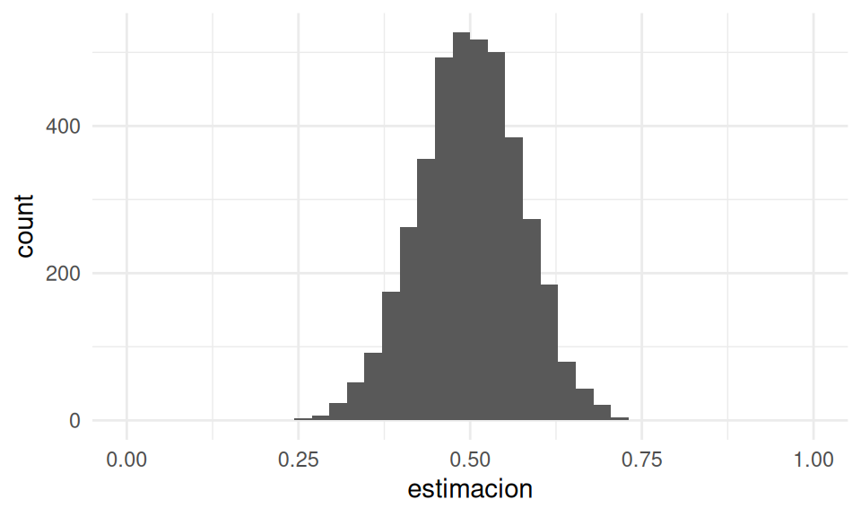 La distribución de muestreo de una estadística enumera los posibles resultados que puede tomar esa estadística sobre todas las muestras posibles. Este es el concepto básico para poder entender qué tan bien o mal estima un parámetro poblacional dado.