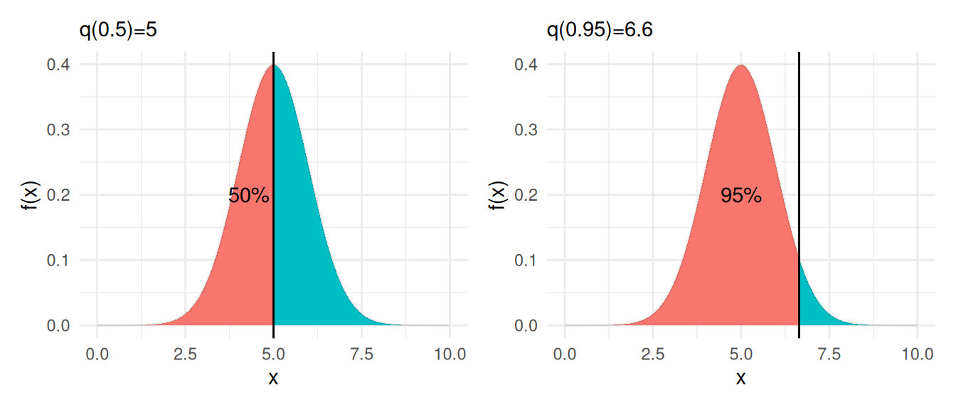 \[q(f, \mu, \sigma) = \mu + \sigma q(f, 0, 1)\] Puedes demostrar esto sin mucha dificultad empezando con \(P(X\leq q) = f\) y estandarizando: