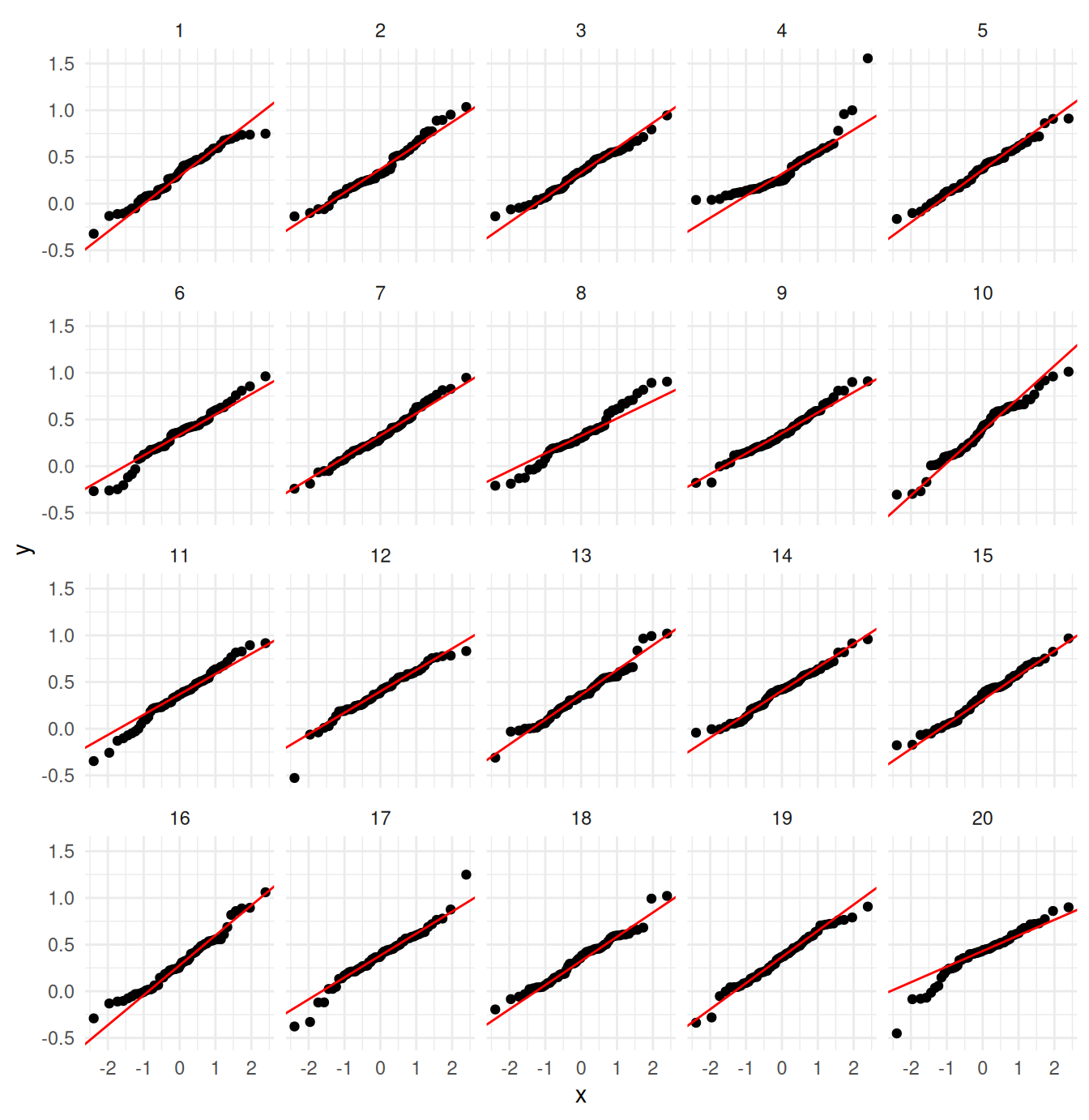 ggplot(lineup_normal, aes(sample = x_1)) +