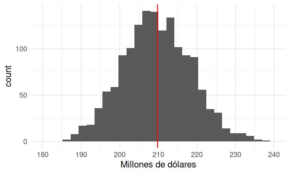 Con muy alta probabilidad el error no será de más de unos 30 millones de dólares (o no más de 20% del valor poblacional).