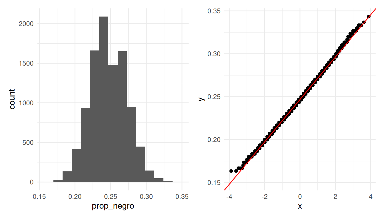 Y vemos que la aproximación es razonable en las partes centrales de la distribución.