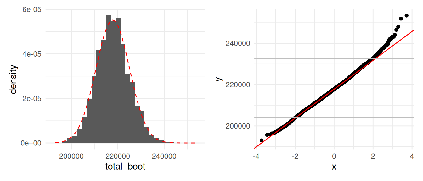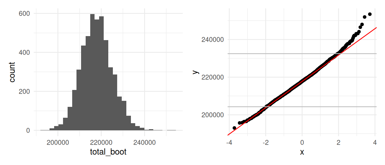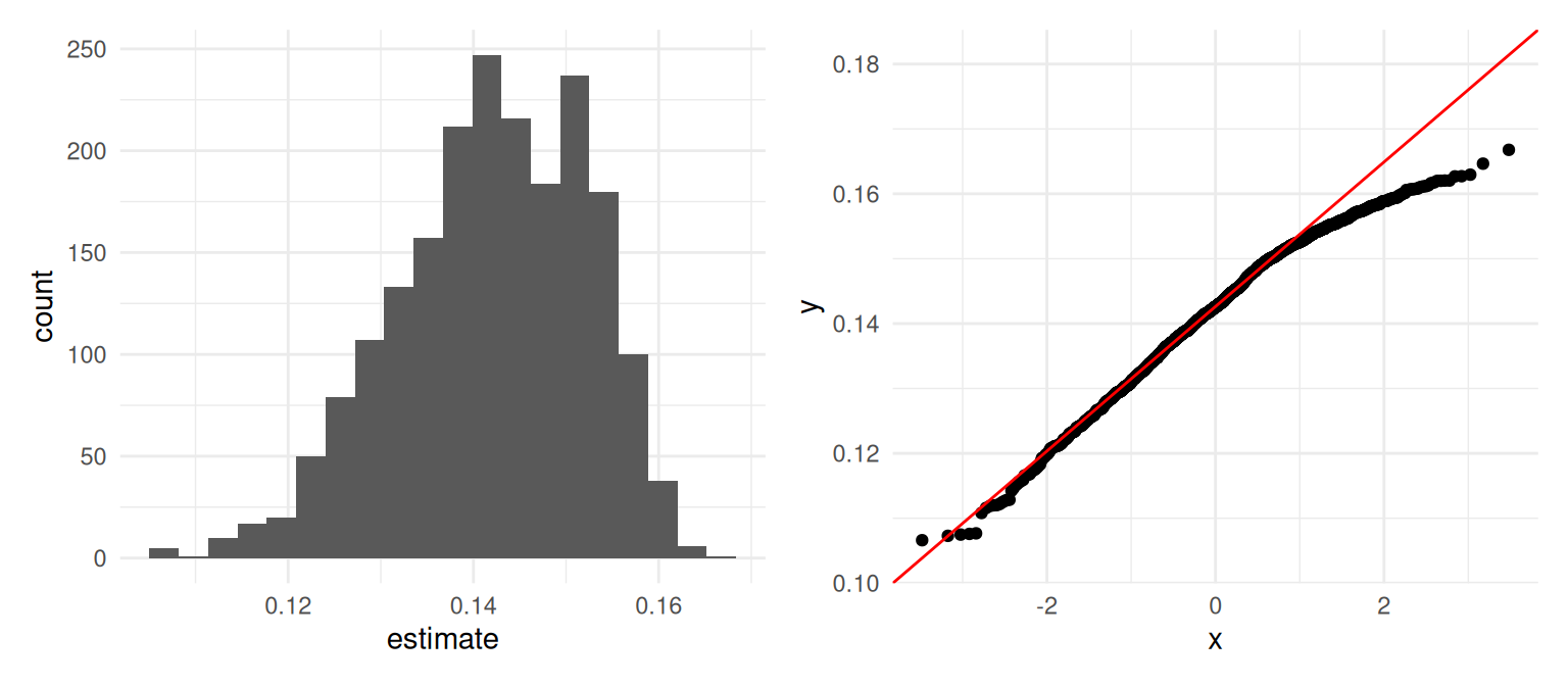 Otra cosa que podríamos hacer para describir la dispersión de nuestro estimador es calcular el error estándar de remuestreo, que estima el error estándar de la distribución de muestreo: