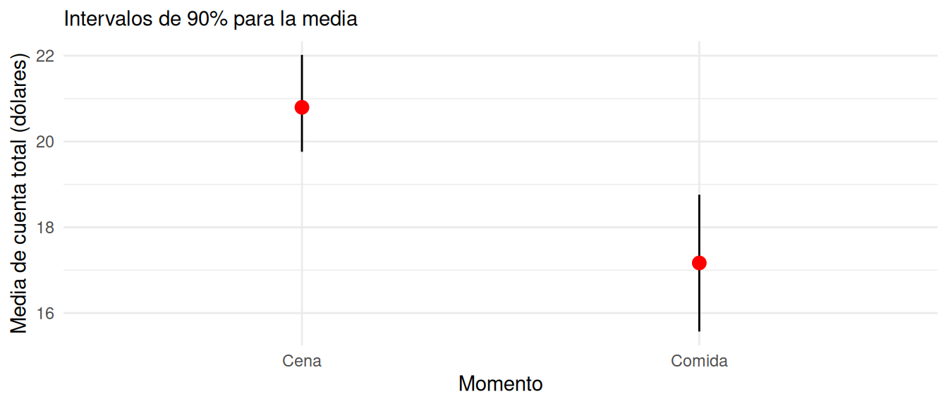 abajo. Ahora podemos calcular un intervalo de confianza del 90% simplemente