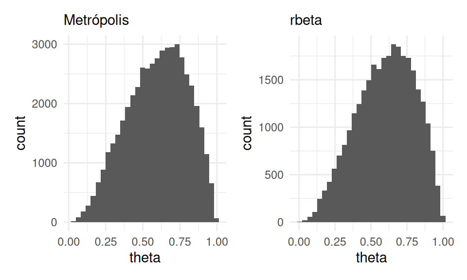 sabemos cómo simular de distribución \(p(\theta | x)\) (usando alguna rutina de R, por