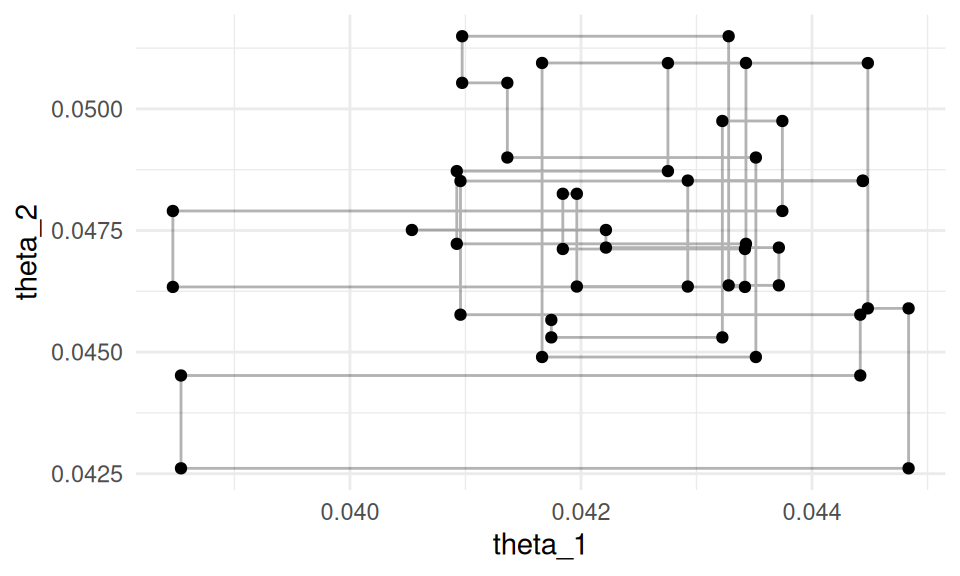 summarise(N = first(N), N_eff = N / (1 + 2 * sum(acf)))