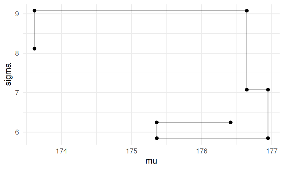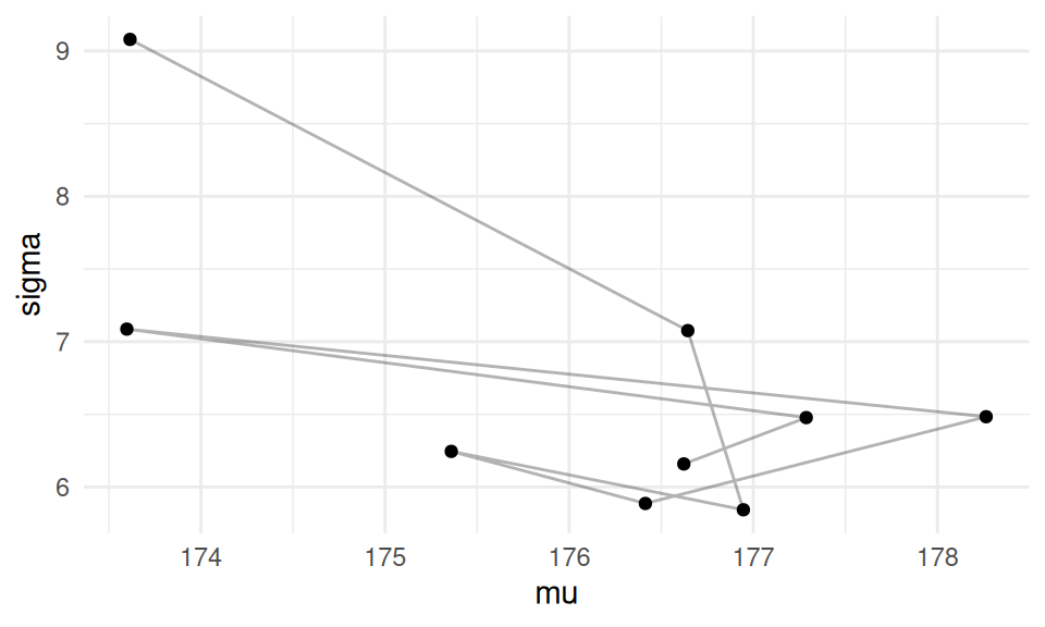 summarise(mu = mean(mu), sigma = mean(sigma))## # A tibble: 1 × 2