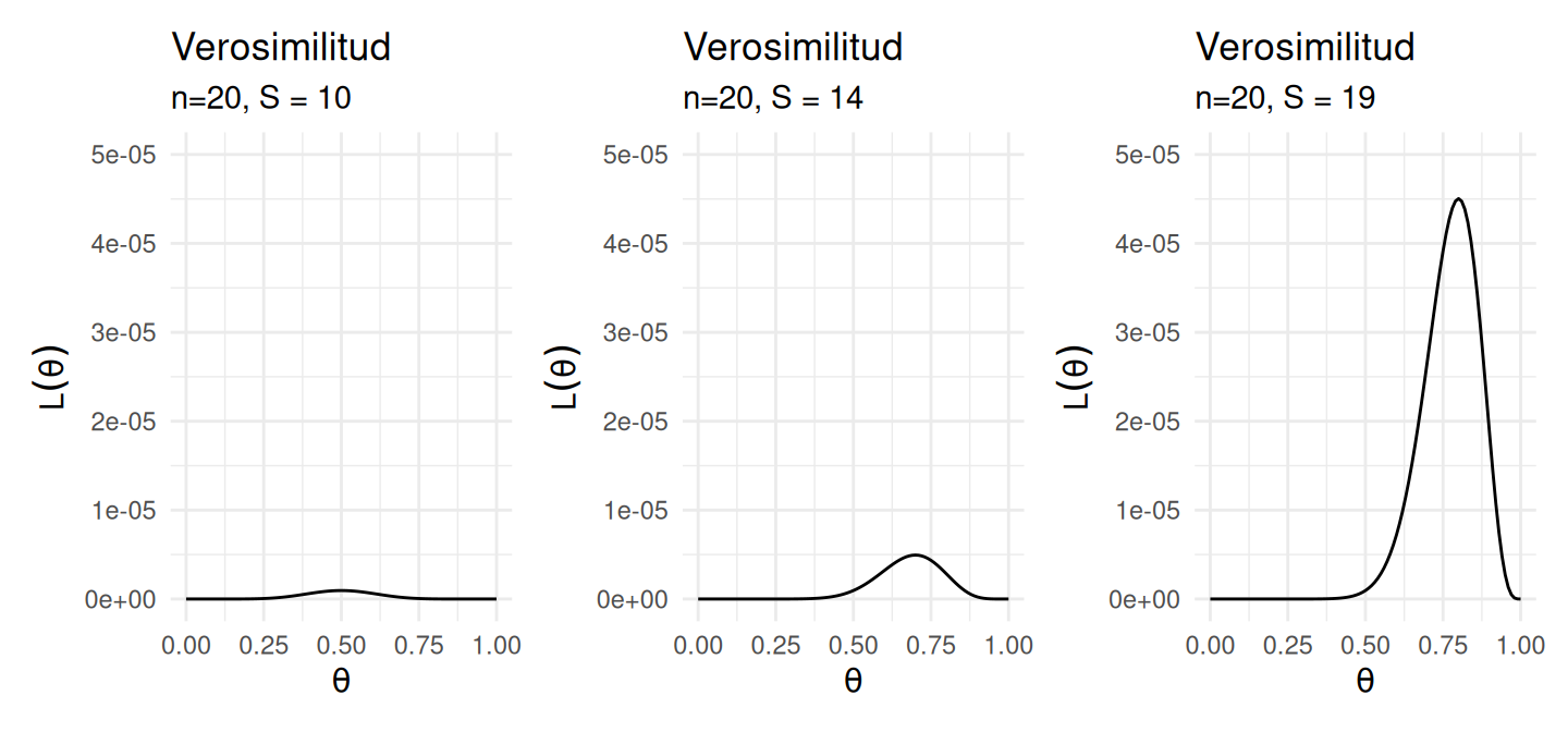 labs(title = "Verosimilitud", subtitle = "n=20, S = 10") +